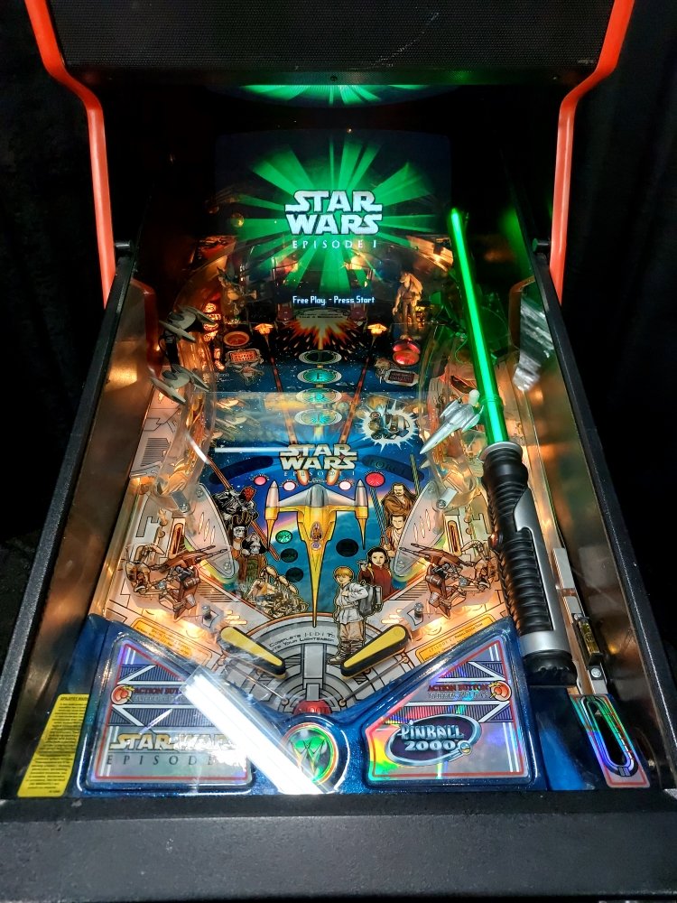 Star Wars: Episode I Pinball is a visually captivating and story-driven pinball experience released in 1999 by Williams, inspired by Star Wars: The Phantom Menace. Blending classic pinball gameplay with iconic Star Wars characters and themes, this machine delivers an epic battle between good and evil.