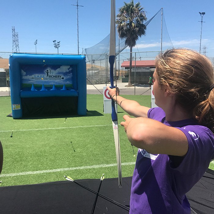 The Archery Hover Ball game delivers an exciting and skill based experience for guests of all ages. Players use a bow and foam tipped safety arrows to aim at floating targets suspended by air, creating a unique challenge that is both engaging and safe for a wide variety of venues.