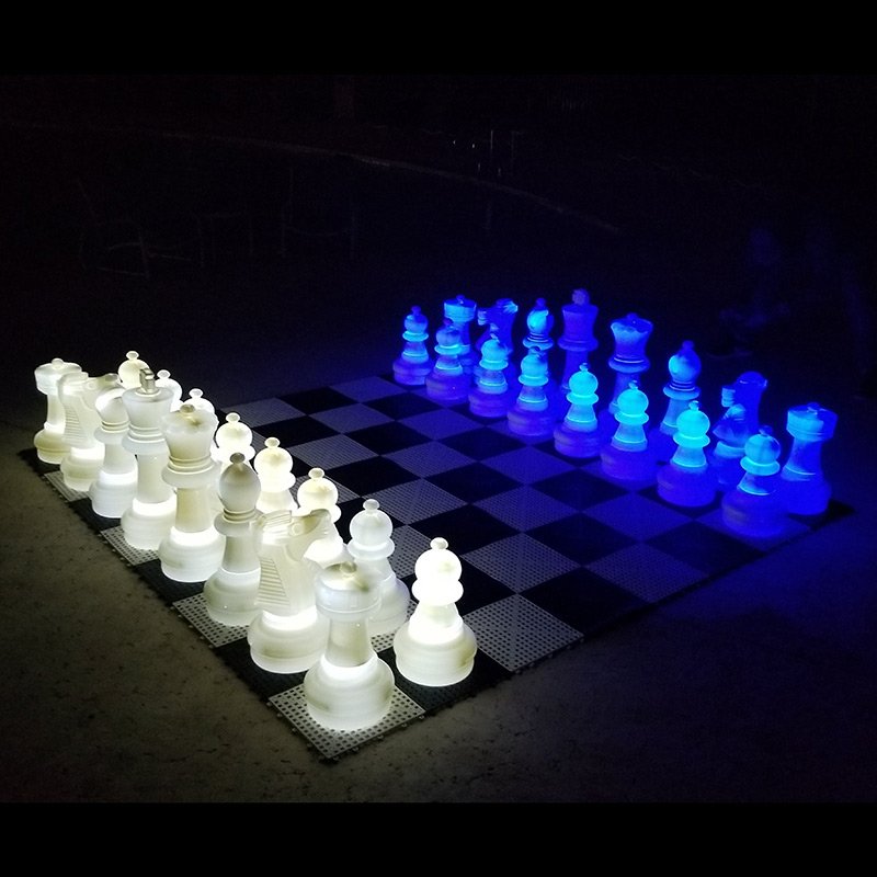 LED Giant Chess is perfect for hotels, resorts, campgrounds, shopping malls, schools, universities, corporate campuses, cruise ships, local parks, museums, and backyard events. The King piece stands 25 inches tall, with all pieces scaling down to 16 inches, making them impressive in size while still easy to move.