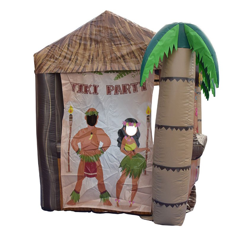 Elevate your tropical-themed event with a Portable Inflatable Tiki Bar Hut rental, a vibrant and interactive centerpiece that brings the island spirit directly to your guests. This unique inflatable not only serves as a functional bar but also features a built-in photo opportunity, allowing attendees to capture memorable keepsakes from your event.