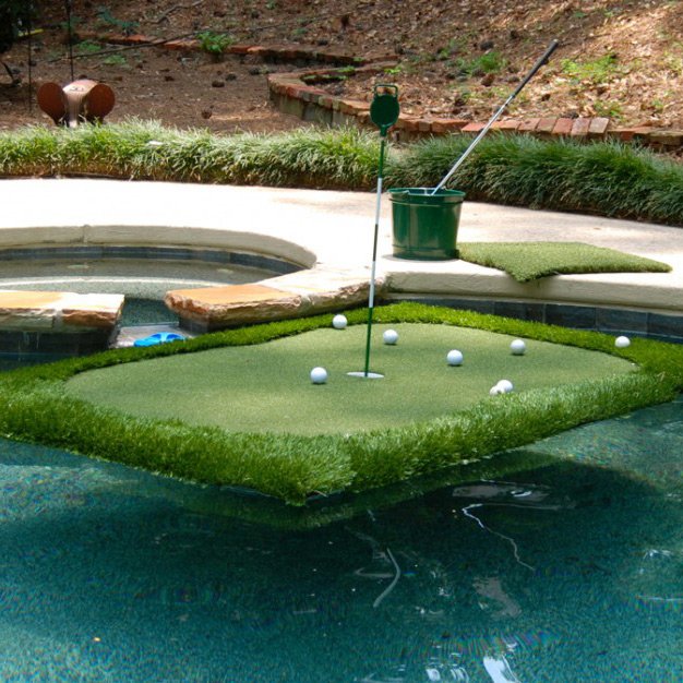 Designed for flexibility, Floating Golf Game includes a floating green, flags, cups, chipping mat, and practice balls in two colors for competitive play. Guests can practice chip shots, flop shots, and aim for the floating holes without leaving the pool deck.