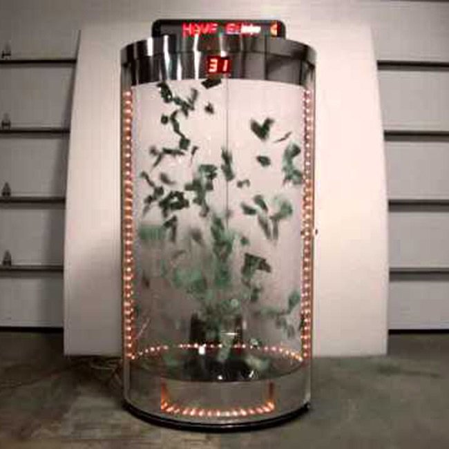 The swirling air effect fills the cube with paper items such as cash replicas, coupons, or promotional inserts, making it a powerful visual centerpiece for marketing activations, trade shows, fundraisers, and corporate events. Its fast paced gameplay and clear objective make it easy for guests to participate while keeping crowds engaged.