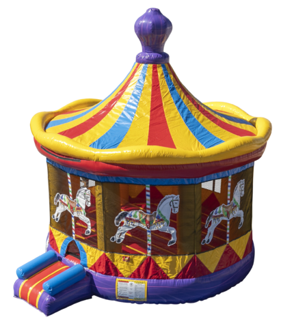 Elevate your event with the Carousel Jumper 16’ x 18’ (J405), a vibrant and eye-catching inflatable designed to bring classic carnival charm and nonstop fun to any celebration. Featuring a unique round layout with a carousel-inspired design and circus tent-style top, this jumper creates an exciting centerpiece that instantly captures attention.