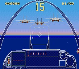 Experience high-speed aerial combat with G-LOC, an F-14 flight simulator and direct sequel to the classic After Burner arcade game. Players must shoot down enemy planes using machine guns and lock-on missiles while rolling and swerving to avoid incoming fire. Some stages feature ground-based enemy installations that must also be destroyed.