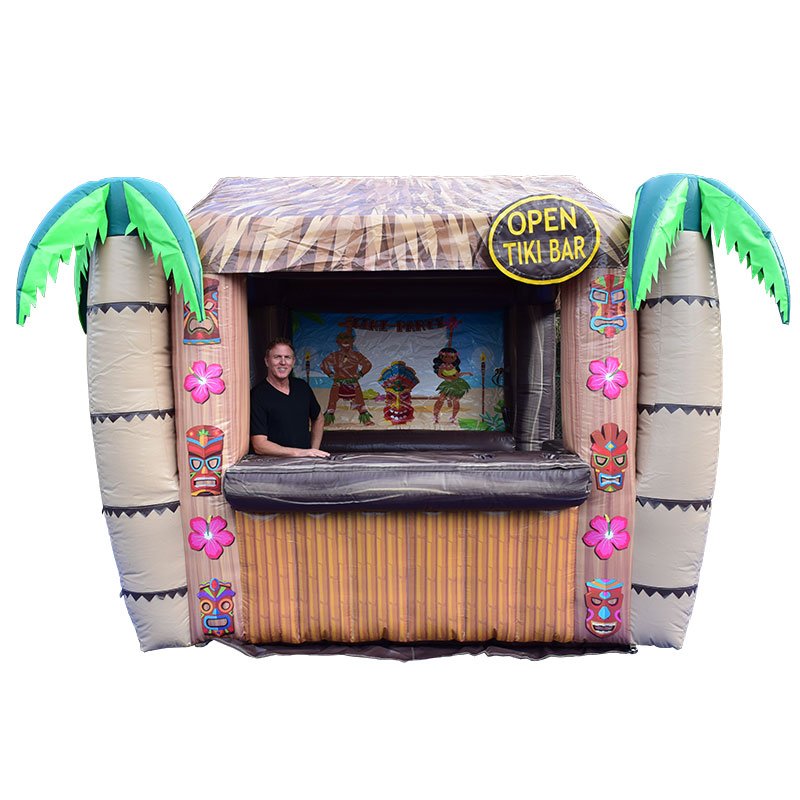 Elevate your tropical-themed event with a Portable Inflatable Tiki Bar Hut rental, a vibrant and interactive centerpiece that brings the island spirit directly to your guests. This unique inflatable not only serves as a functional bar but also features a built-in photo opportunity, allowing attendees to capture memorable keepsakes from your event.