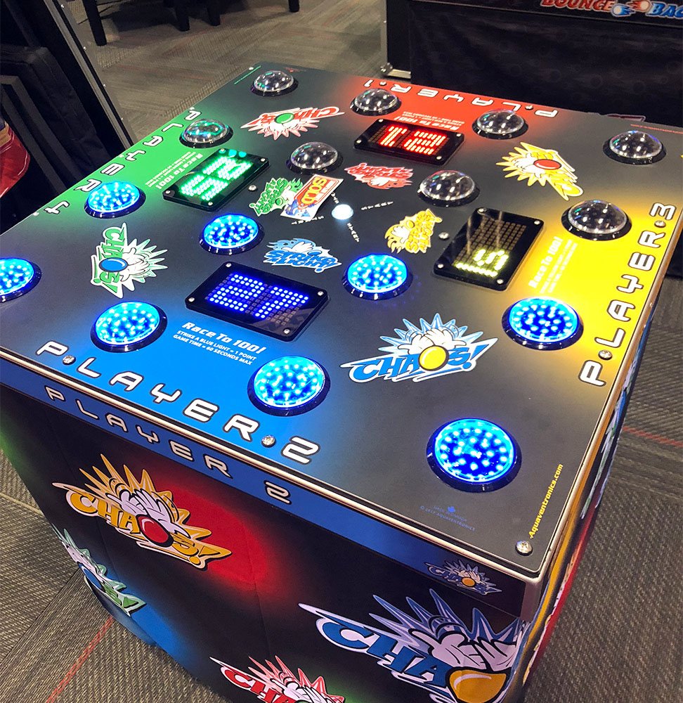 Perfect for corporate events, team-building activities, trade shows, parties, and competitive game zones, Chaos Strike A Light is ideal for tournaments and head-to-head challenges. Games can be played as a race to 100 points or in timed 30-second rounds, creating intense bursts of action that draw crowds and spectators.