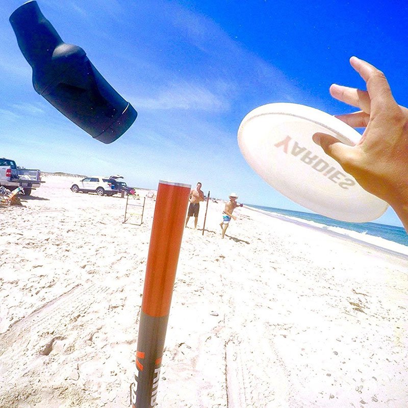 Challenge your guests with a fun, fast-paced outdoor game that blends skill, coordination, and friendly competition. Polish Horseshoes, also known as Spanish Horseshoes, Frisbeener, French Darts, or Beersbee, is a crowd-favorite lawn game played by two teams of two, using a Frisbee, poles, and bottles.
