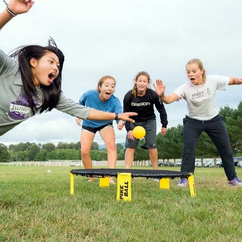 Get your teams ready and keep the action going with this energetic and competitive Spikeball setup. Played 2 vs 2 around a central net, Spikeball combines elements of volleyball and hand-eye coordination as players serve, pass, and spike the ball off the net using up to three touches per team.
